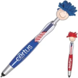 Get your name and brand message into the hands of your clients with the promotional Patriotic Mop Topper Pen. This promotion is as useful as it is silly-looking; the Mop Topper Pen is a stylus and screen cleaner. Use this twist on instead of just a regular promotional pen for this Fourth of July season.