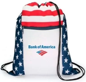 Drawstring backpacks are effective patriotic promotional products that are made to last. This branded patriotic drawstring backpack allows for logo imprinting on the front zippered pocket. Show off your patriotism with this cost-effective giveaway!